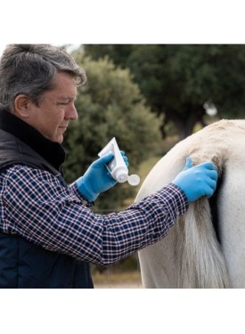 Puede utilizarse antes de aplicar pomadas, geles o tratamientos tópicos como la Crema Regenerante Antipicores de Maktuk Horses.